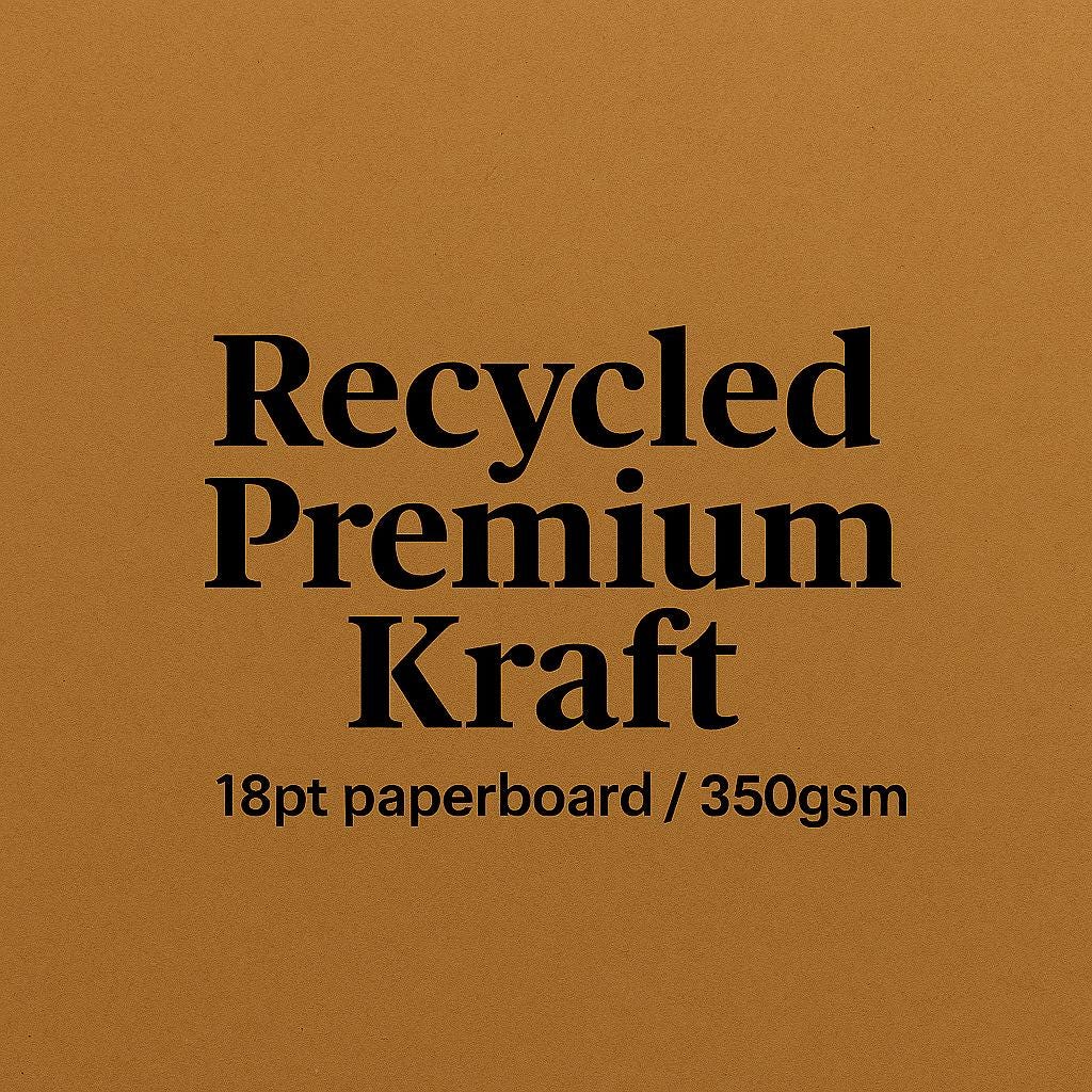 -Premium Recycled Kraft: Premium heavy-duty 18pt paperboard with a brown color that remains consistent in color and finish – no blemishes