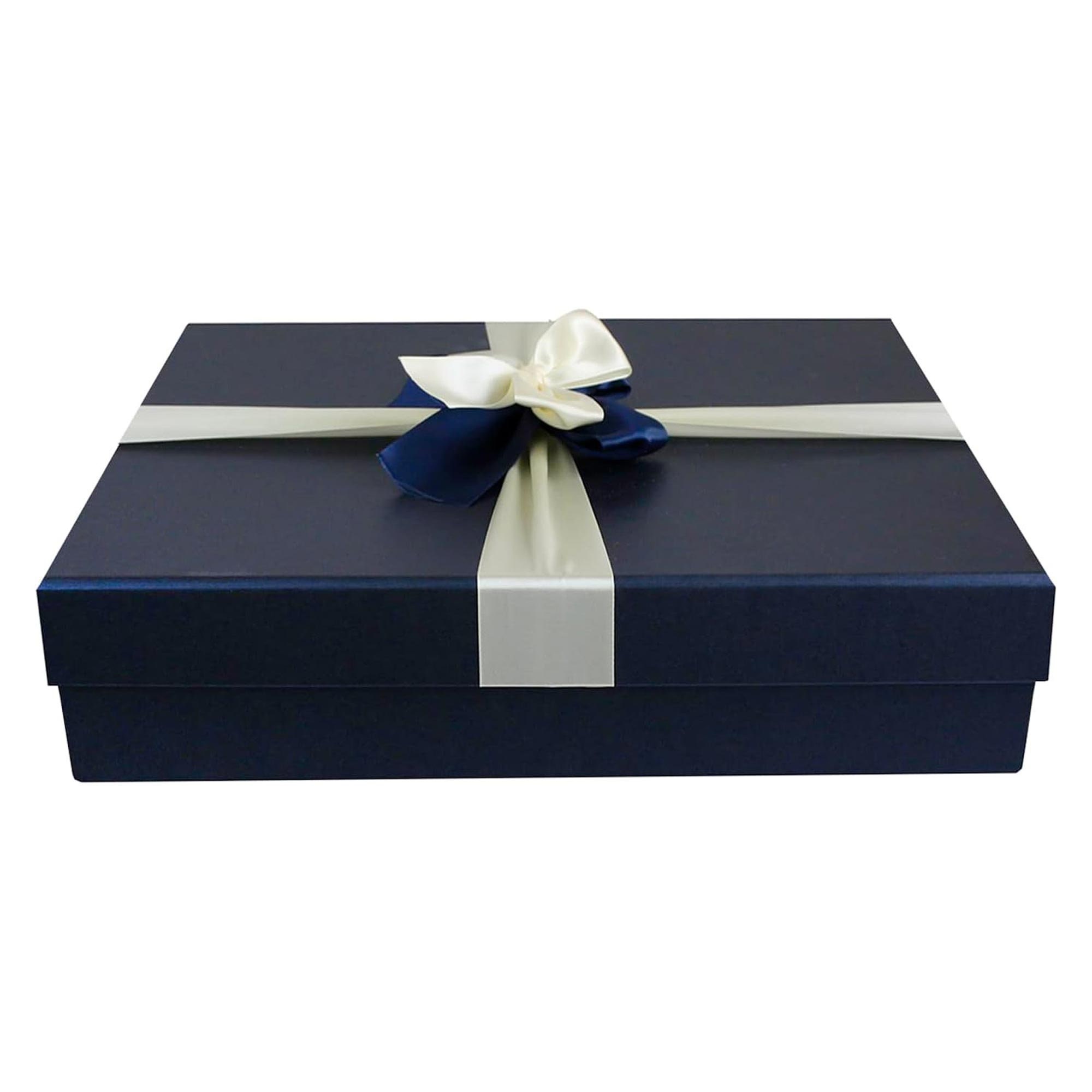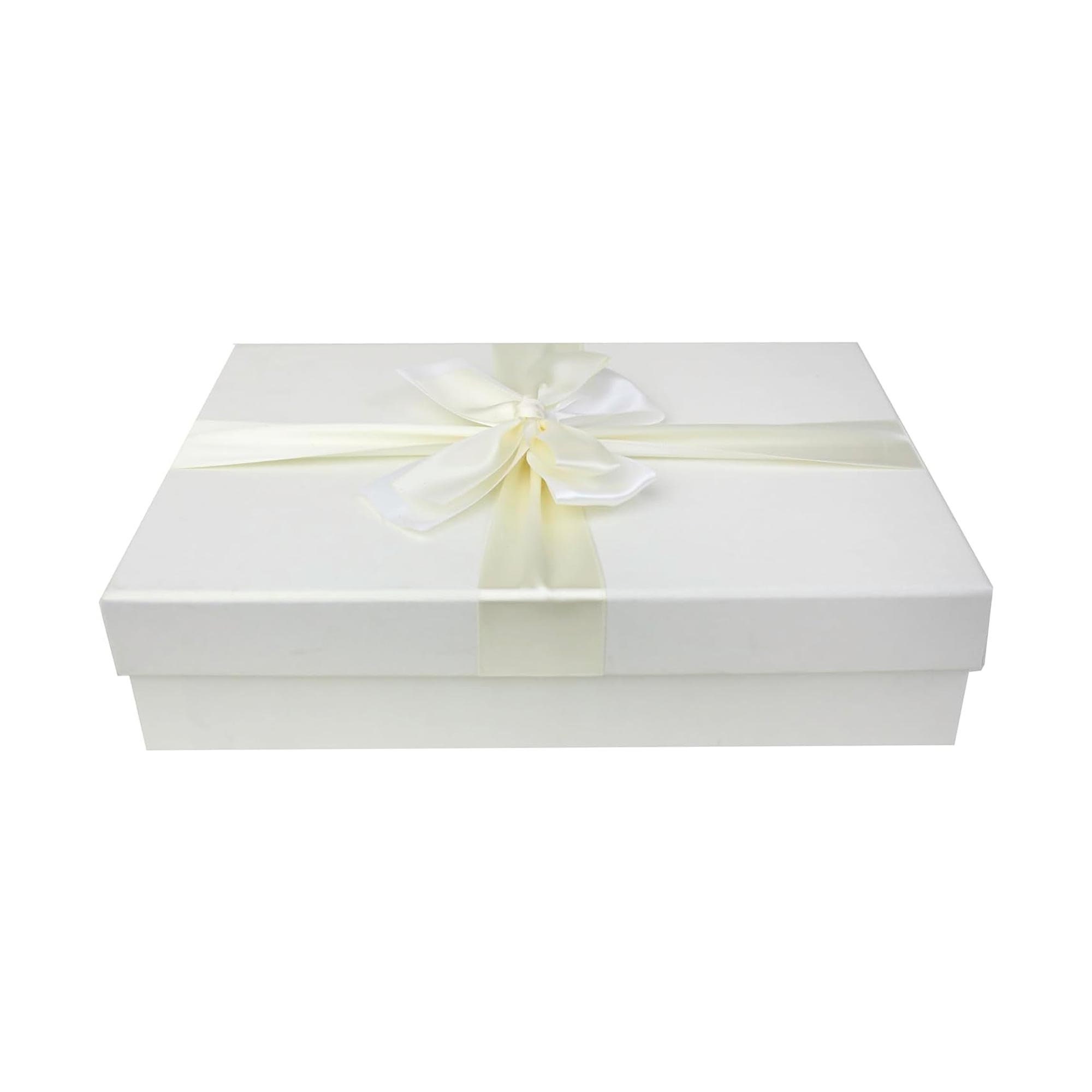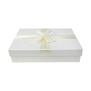Single Rectangle Rigid Gift Box with Lid, Brown Interior & Satin Ribbon