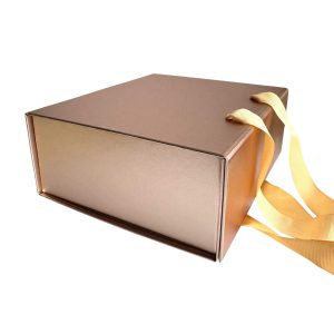 Champagne Foldable Magnetic Gift Box with Ribbon Handles | Reusable Luxury Gift Packaging Box | Collapsible Storage Gift Box